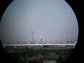 HYBRID W-ZERO3の内蔵カメラは35mm判換算36mm相当と考えられます。双眼鏡の倍率は6.5倍であることから、ズームを使わない場合は36mm×6.5倍で234mm相当、ズーム(X2)で468mm相当、ズーム(X4)で936mm相当となります。撮影例のようにズームなしでは左右にケラレが発生しましたが、ズームX2でケラレがなくなりました。