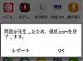 私も同じ現象が出るか試しました価格.COMのアプリを立ち上げ、価格.COMアプリがフリーズ