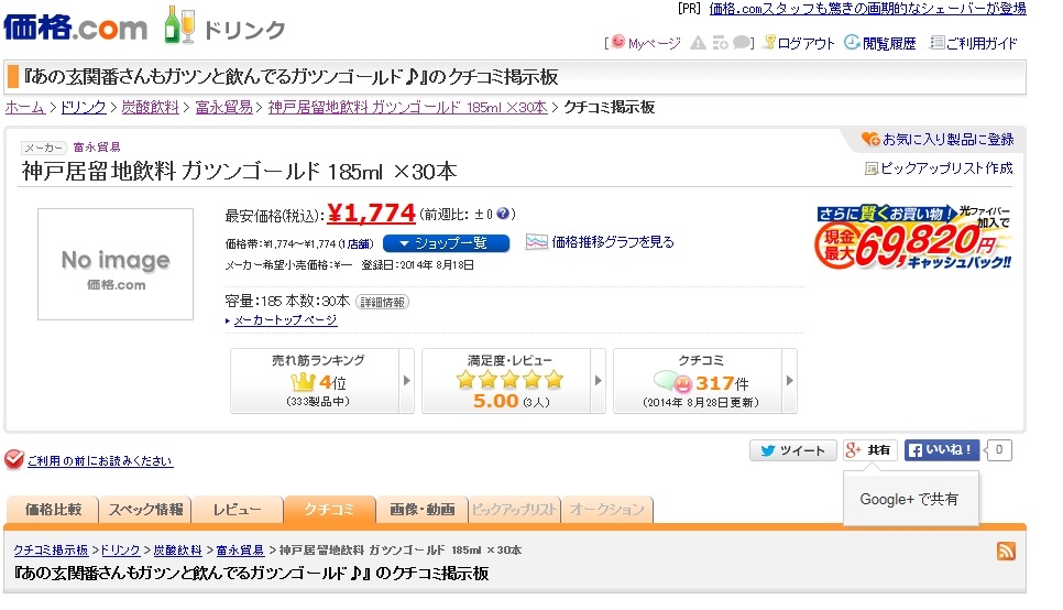 『ガツンゴールドが遂に堂々の4位に!』富永貿易 神戸居留地 ガツンゴールド 185ml×30本 缶 優雅な子猫さんのクチコミ掲示板画像1/1